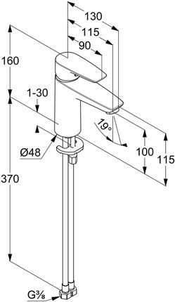PURE&SOLID XL одноважільний змішувач для умивальника 100, без зливного комплекту, витрата 3,8 л/хв. ???? SKU: 341980575WR4??KLUDI PURE&SOLID??одноважільний змішувач для умивальника 100 DN 15??встановлення на один отвір??пряма ручка??холодна вода в середньому положенні ручки??керамічна головка з обмежувачем потоку гарячої води??аератор M 24 x 1??потік води 3,8 л/хв при тиску 3 бар??без комплекту відходів??гнучкі напірні шланги G 3/8??система швидкого монтажу??висота носика 100 мм