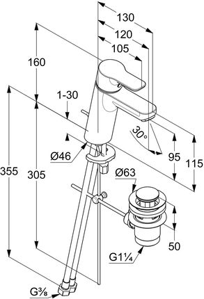 Змішувач для умивальника PURE&EASY XL, одноважільний, зі зливним набором, витрата 3,8 л/хв. ???? SKU: 372930565WR4??KLUDI PURE&EASY??одноважільний змішувач для умивальника 70 DN 15??монтаж на один отвір??пряма ручка??холодна вода в середньому положенні ручки??потік води 3,8 л/хв при тиску 3 бар??M 24 аератор x 1?? дренажний набір G 1 1/4 виготовлений виготовлені з металевих шлангів швидкого монтажу G 3/8 висотою 70 мм