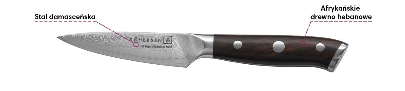 • Ніж для овочів Kohersen Nóż do warzyw PARING Elegance EBONY WOOD 8,9 cm, фото 8