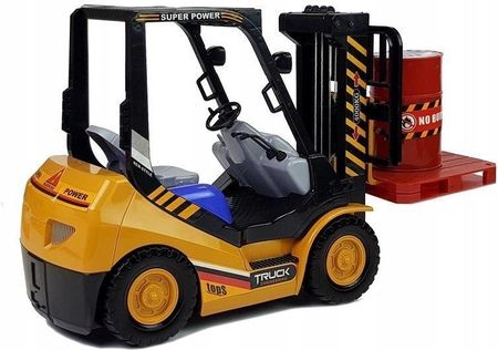 Вилочний навантажувач із дистанційним керуванням Цей чудовий транспортний засіб пересувається на дистанційному керуванні. Це повнофункціональний навантажувач на радіоуправлінні, оснащений дистанційно керованими вилками, завдяки яким грати маленьким комірником стає надзвичайно реалістично. Вилки візка піднімаються на висоту 28 сантиметрів! Завдяки піддону та бочці, що входять у комплект, ви можете навчитися керувати навантажувачем. Додаткове реалістичне переднє освітлення, що працює при русі вперед, доповнює ефект роботи на будмайданчику чи складі. Великі 7-сантиметрові колеса забезпечують хороше зчеплення, а 12,5-сантиметрова колісна база забезпечує належну стійкість.