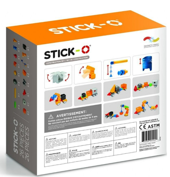 Magformers — світовий виробник унікальних та оригінальних магнітних блоків з високоякісних матеріалів. Кожен блок містить неодимові магніти, які сильно притягуються один до одного. Stick-0 - це нова серія для дітей від 18 місяців, яка дозволяє їм відкрити для себе освітню силу магнітних кубиків. Конструктор містить 26 елементів різної форми, які дозволяють зібрати багато цікавих конструкцій.