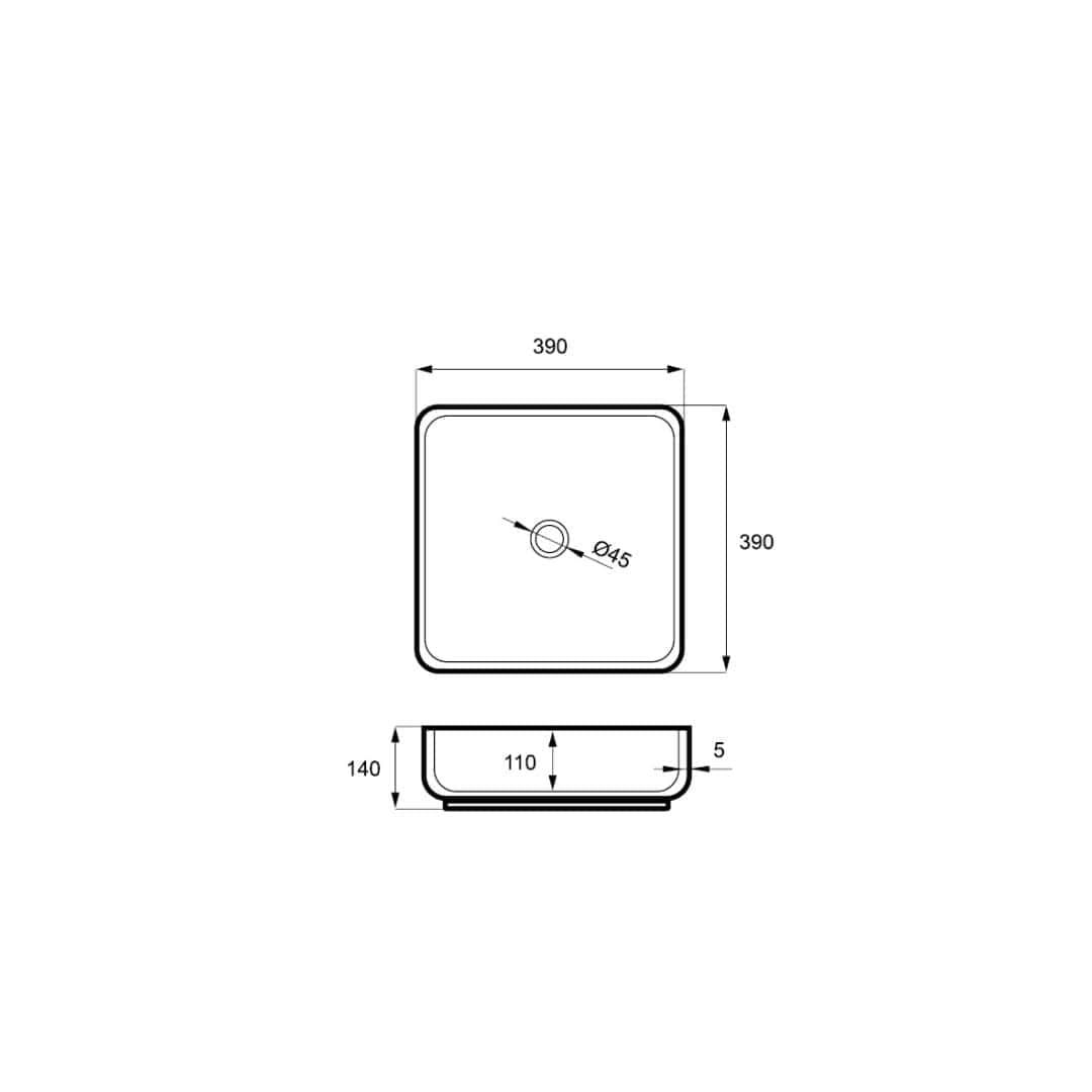Особливості______Елегантний дизайн - струнка квадратна чаша з надзвичайно тонким краєм (5 мм) Стримано прихована конічна основа Чудове рішення для невеликих ванних кімнат завдяки компактному розміру Без переливу та отвору для змішувача - легше встановлюється в арматуру та вся композиція Покращена кераміка - надзвичайно легка, і в той же час стійка до подряпин і пошкоджень