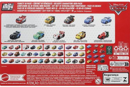 Довжина гоночних автомобілів становить приблизно 4 см, а їхній кишеньковий розмір дозволяє легко помістити їх у кишеню чи рюкзак. Завдяки цьому ви точно зможете взяти улюблених героїв куди завгодно. Завдяки цим 10 транспортним засобам, що відображають героїв найпопулярнішої автомобільної анімації, діти отримають задоволення, відтворюючи дії з фільму та уявляючи власні пригоди. Характеристики товару: