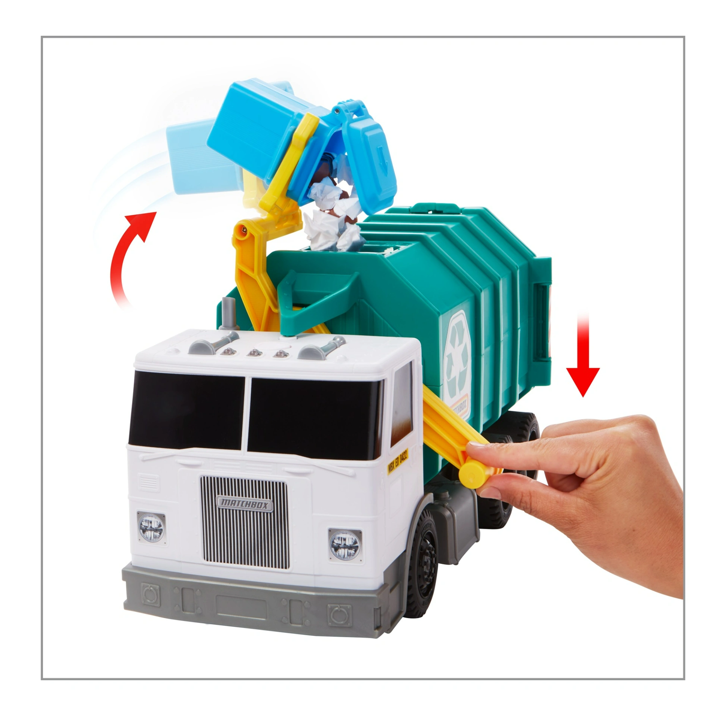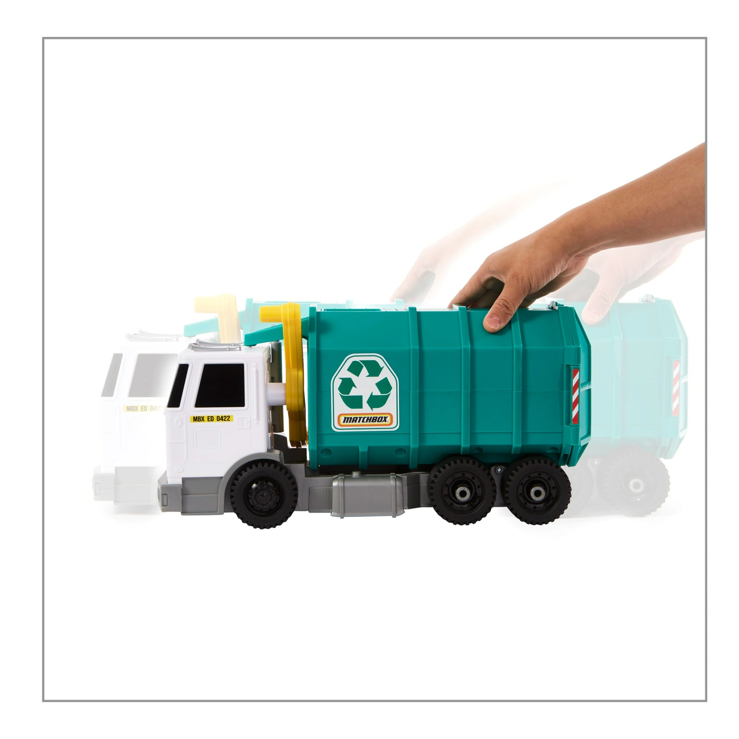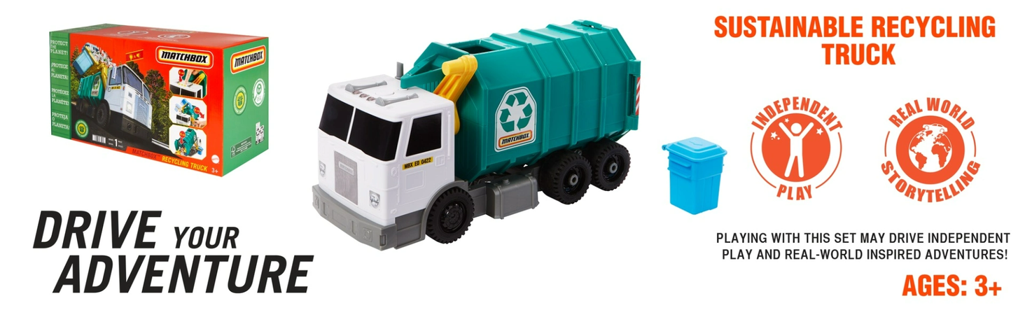 Шлях до екологічно чистих розваг! Matchbox з гордістю пропагує дбайливе ставлення до навколишнього середовища та нагадує дітям про важливість переробки. У сміттєвоза Matchbox упаковка не містить пластику, а електронний модуль для сміття розроблено таким чином, щоб його можна було легко зняти та правильно утилізувати.