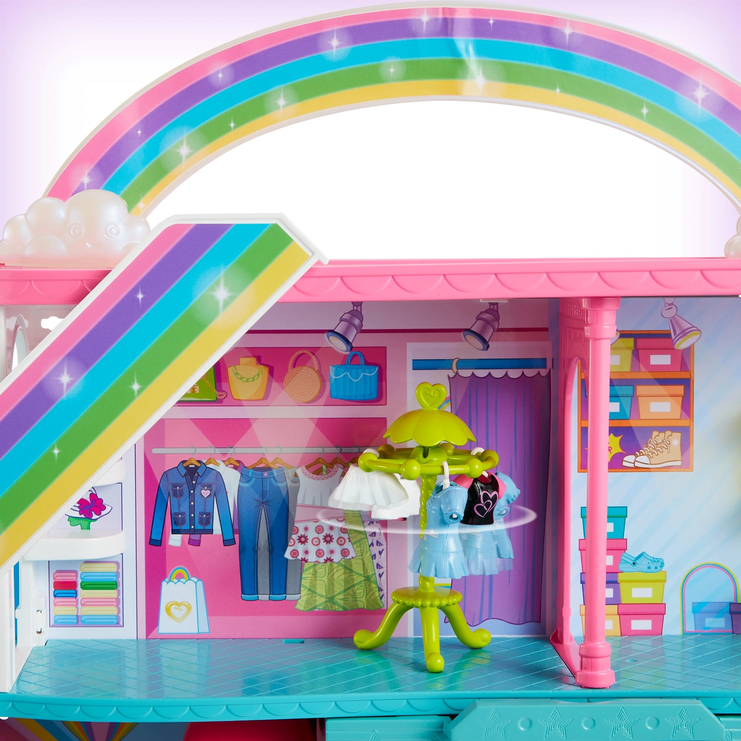 Ігровий набір Polly Pocket™ Rainbow Shopping Mall складається з 3 рівнів, 9 ігрових зон і понад 35 елементів, включаючи ляльку Polly™ 7,5 см.