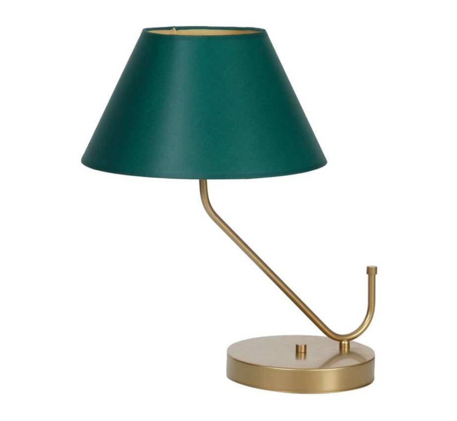 Технічні дані: Ступінь герметичності: IP20 Напруга живлення: 230 В Матеріал абажура: Тканина Матеріал: Метал Регулювання напрямку світла: Ні Висота: 50 см Глибина: 45 см Ширина: 30 см Цоколь: E27 Кількість джерел світла: 1 Джерело світла в комплекті: Немає Змінне світло Джерело: Так Колір абажура: Зелений Колір: Латунь