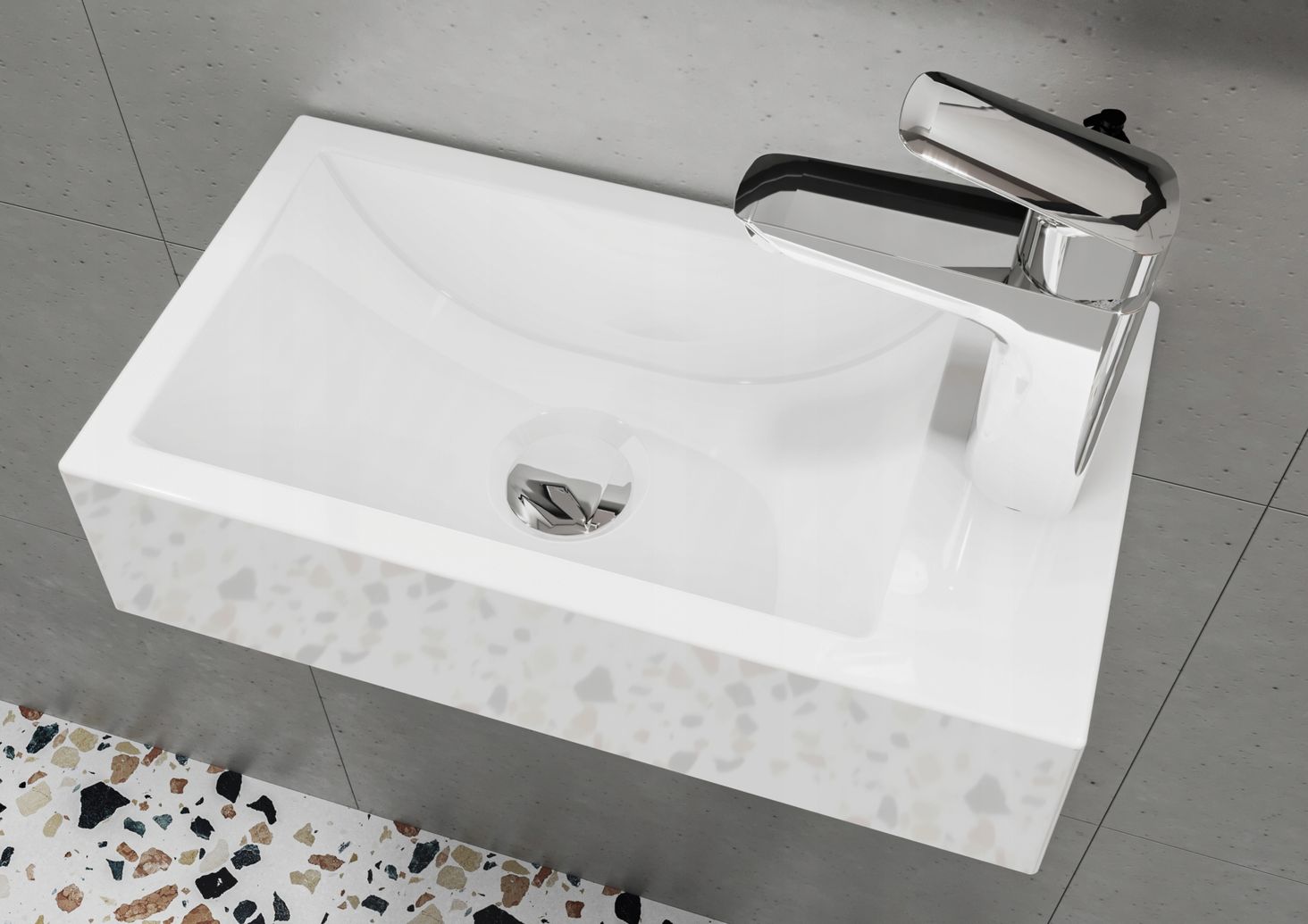 Підвісний умивальник з литого мармуру з отвором під кран, мала чаша 40,8 x 22,7 см Miraggio