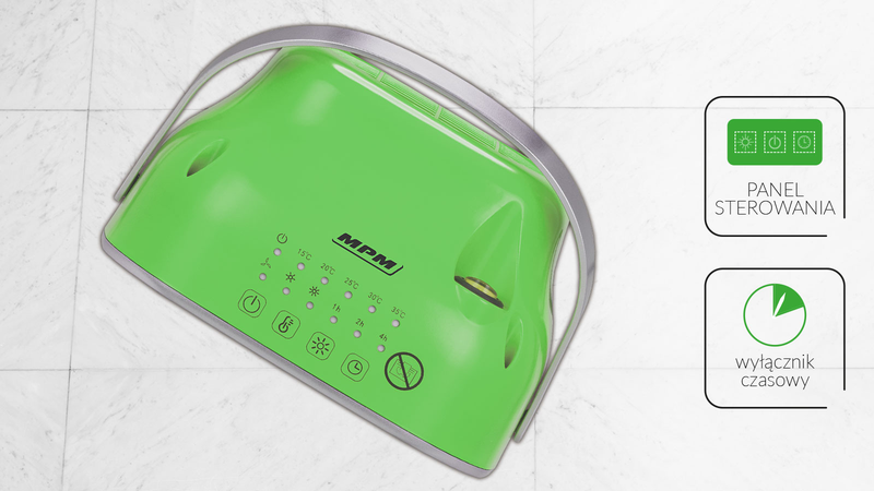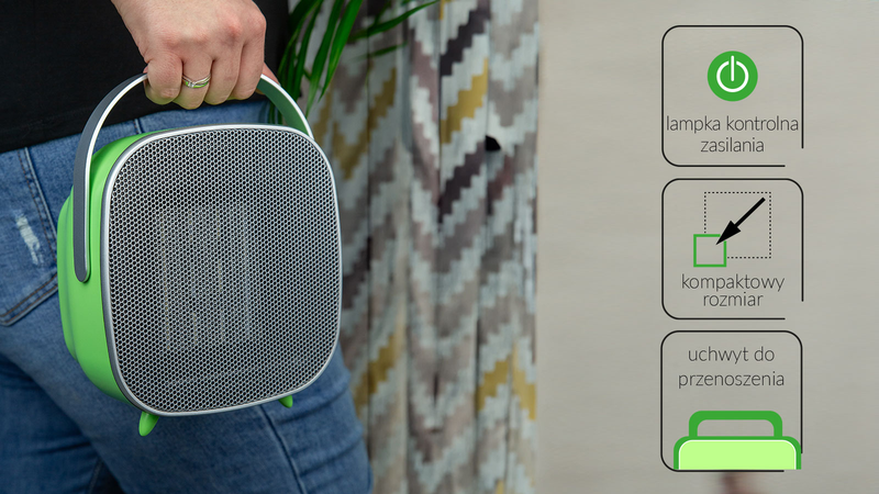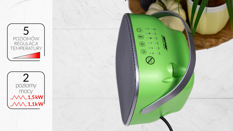 Відкрийте для себе нову якість опалення приміщень. Знайомтеся з керамічним тепловентилятором MUG-22/Z з 5 рівнями регулювання температури та насолоджуйтеся приємною температурою у своєму домі в холодні дні. Оригінальний дизайн і красивий зелений колір зроблять прилад окрасою вашого інтер'єру.