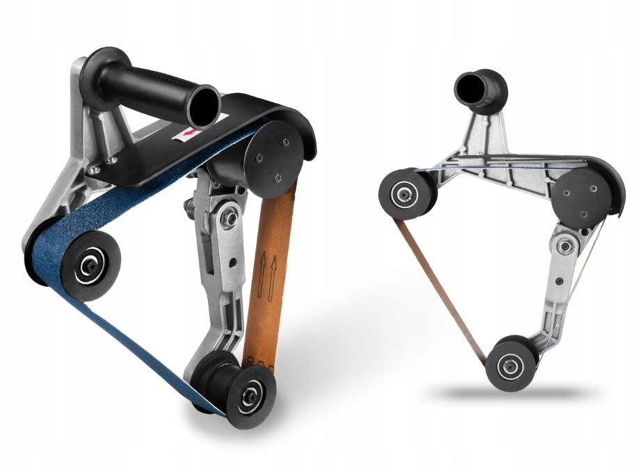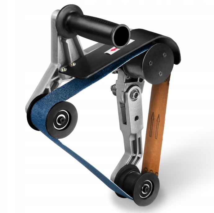 Набір монтажних аксесуарів для стрічкової шліфувальної машини MSW ідеально підходить для полірування, шліфування та чищення круглих елементів різного розміру. Різьба M14 x 2 мм, яка використовується в пристрої, підходить для більшості редукторів електроінструментів, доступних на ринку, а нескінченний ремінь максимальною довжиною 760 мм і шириною 40 мм дуже легко замінити. Широка шліфувальна поверхня аксесуарів дозволяє обробляти труби або поручні діаметром від 12 до 180 мм. Кут шліфування дозволяє швидко та точно відполірувати дрібні деталі та досягти важкодоступних місць.