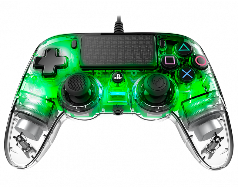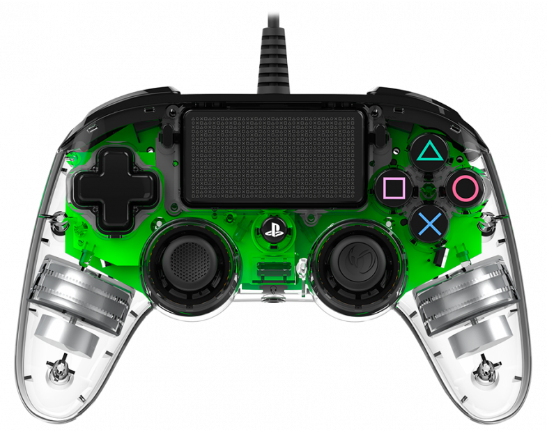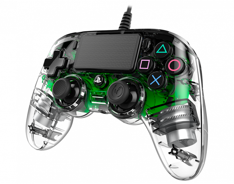 Компактний контролер Wired Illuminated Controller від NACON офіційно ліцензований для консолей PS4™ і пропонує низку основних функцій, включаючи сенсорну панель, вібраційні двигуни та світлодіодний індикатор стану програвача. Також містить кнопки дій із символами й кольорами PlayStation®, а також кнопки SHARE, OPTIONS і PS.