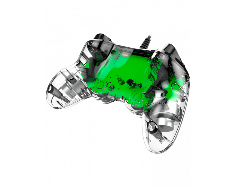 Провідний компактний контролер із підсвічуванням має ті самі функції, що й компактний дротовий контролер, але має унікальний прозорий дизайн і включає світлодіодні світлові ефекти.