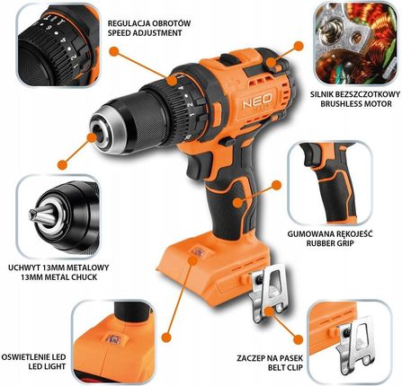 Компактний дриль-шуруповерт NEO TOOLS довжиною всього 15 см ідеально підходить для роботи в тісних і важкодоступних місцях. Його ергономічний дизайн і легка конструкція забезпечують комфорт використання навіть під час тривалої роботи. Додаткові функції, такі як світлодіодне освітлення, полегшують роботу в погано освітлених місцях, а практичне кріплення на ремінь підвищує функціональність інструменту. Завдяки 20-ступінчастому регулюванню крутного моменту та додатковим параметрам свердління та удару дриль/шуруповерт NEO TOOLS є ідеальним вибором для професіоналів і ентузіастів DIY, яким потрібен надійний, потужний і універсальний інструмент.