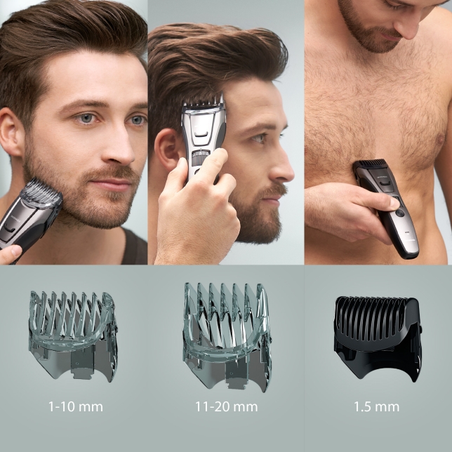 Цей компактний тример постачається з трьома гребінцями для бороди, волосся та тіла для гнучкої укладки. Вони ідеально підходять для ряду завдань, зокрема для формування вашої бороди, підстригання волосся на тілі до вибраної довжини та обережного підстригання чутливих ділянок, наприклад пахв.