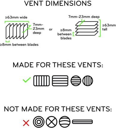 Сумісність Працює з будь-яким телефоном, оснащеним повсякденним чохлом або мобільним універсальним адаптером Peak Design Також працює з будь-яким телефоном або чохлом MagSafe* Бездротова зарядка може бути неможлива або оптимальна за використання універсального адаптера *MagSafe є зареєстрованою торговою маркою Apple, Inc. Сумісність з автомобілем Безпечно підключати до вентиляційних отворів опалення/охолодження, які відповідають усім наведеним нижче критеріям: