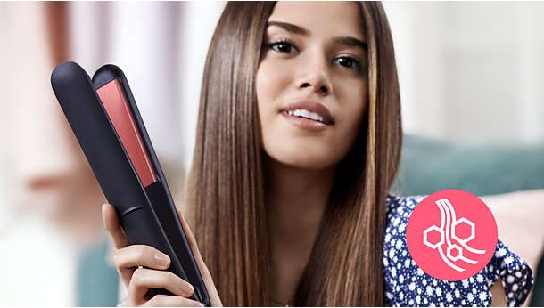 Просочені кератином керамічні пластини легко ковзають по волоссю для швидкого та легкого укладання.