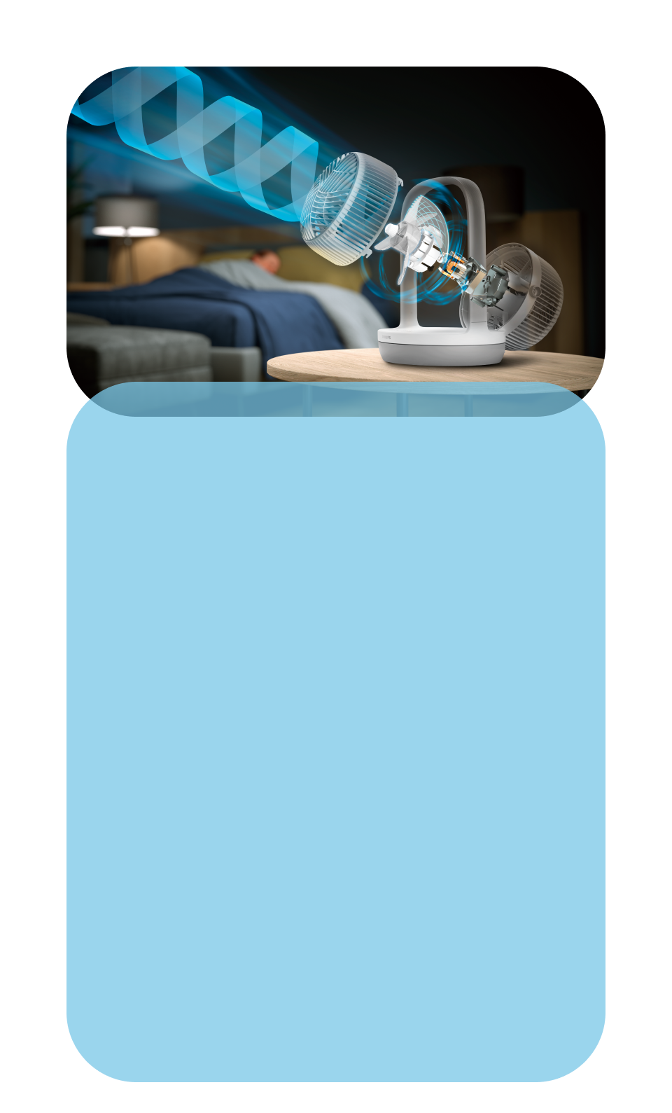 30% зменшення гучності¹ завдяки технології SilentWings. Вентилятор також тихо працює вночі, дозволяючи вам спати спокійно.