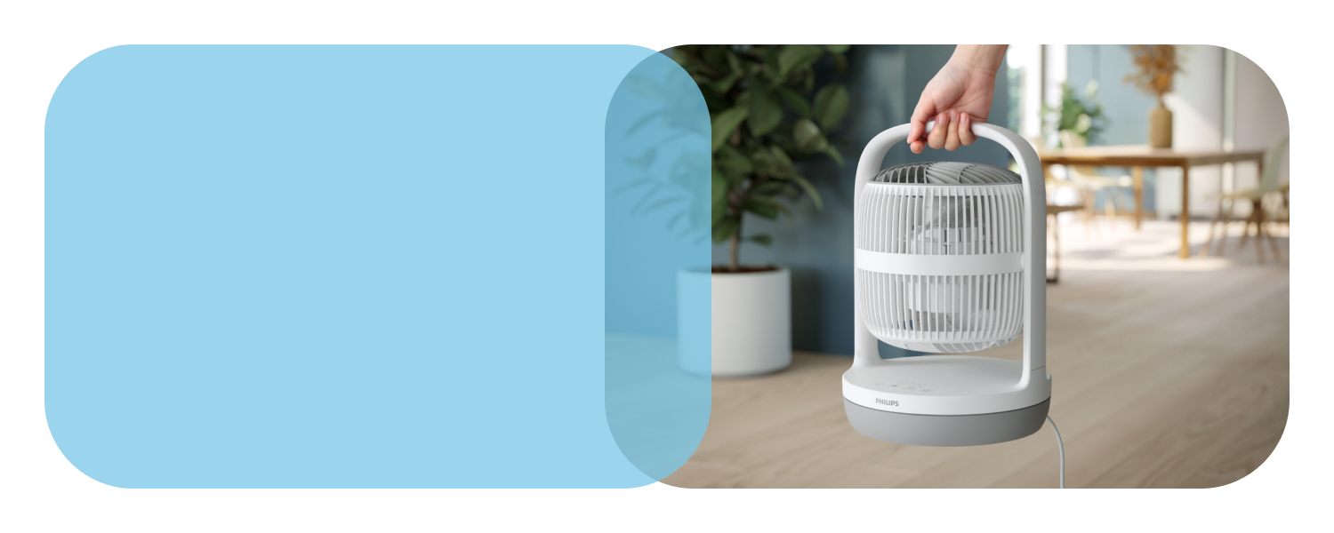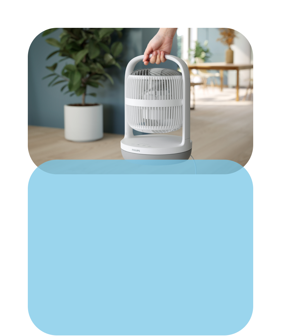 Зручна ручка доповнює сучасний дизайн і полегшує перенесення вентилятора, який важить лише 2,3 кг.