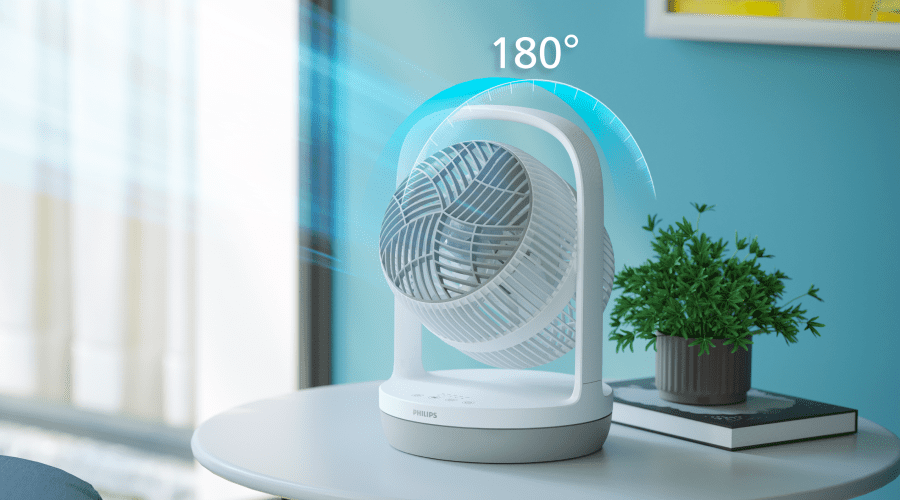 Компактні розміри забезпечують зручне використання. Легкий настільний вентилятор оснащений ручкою, що дозволяє легко переносити його куди завгодно.