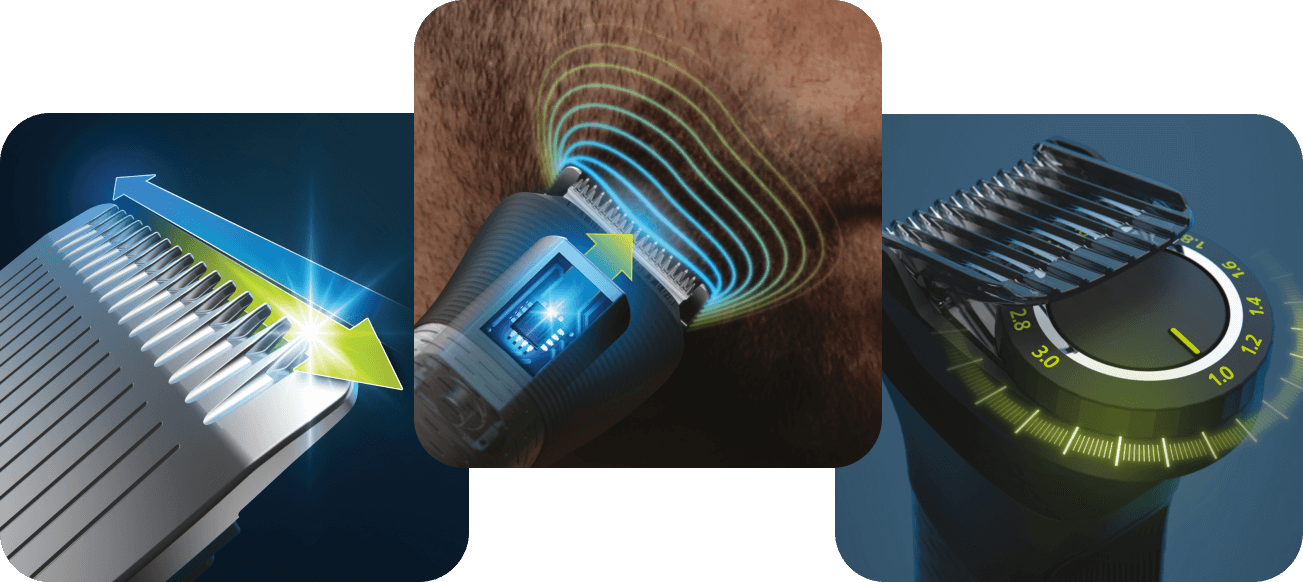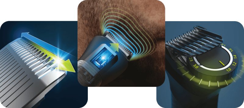 Тример прискіпливо аналізує густоту волосся на обличчі, скануючи їх до 125 разів на секунду. В результаті він автоматично регулює потужність у тих областях, де це необхідно. Це забезпечує виняткову ефективність навіть у випадку густого або довшого волосся.