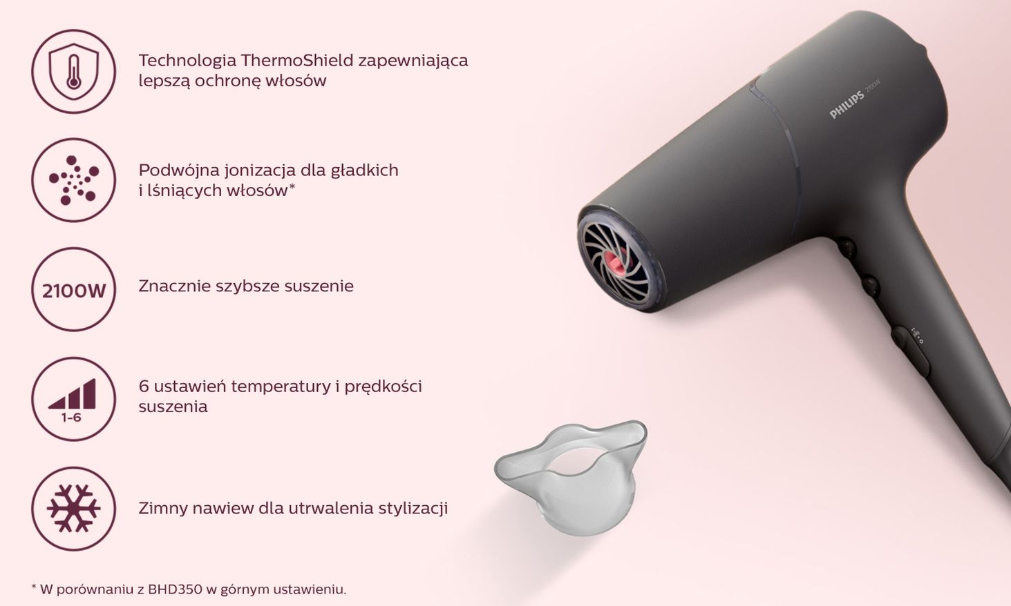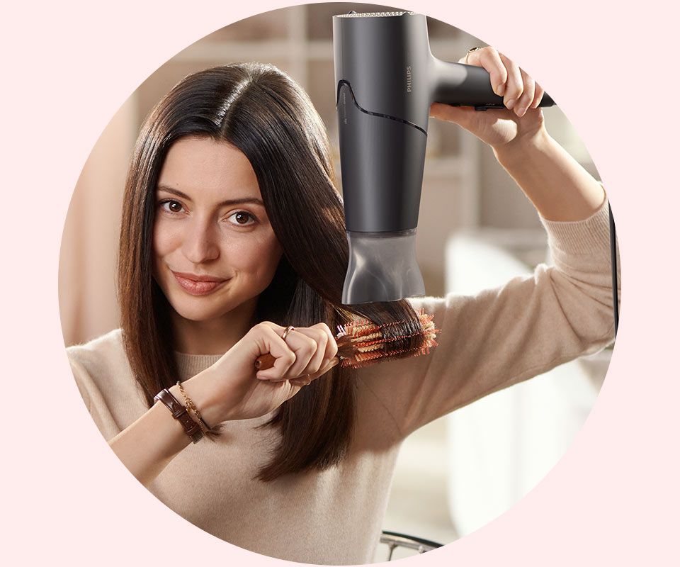 Відкрийте для себе потужний фен Philips 5000 із технологією ThermoShield, яка забезпечує швидке сушіння та 100% захист волосся від термічного пошкодження*.