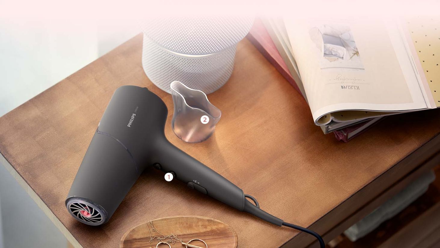 У сушильній машині можна налаштувати потік холодного повітря, режим нижчої або вищої температури та різні швидкості сушіння. Підберіть налаштування тепла та швидкості до стану свого волосся для точного керування укладанням.