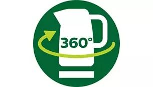 Бездротовий чайник розміщений на основі, що обертається (360°), що дозволяє легко піднімати та прибирати пристрій.