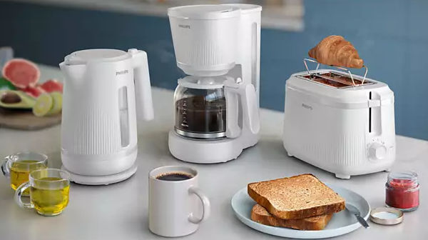 Відкрийте для себе наш повний набір для сніданку* із серії 3000 із відповідним тостером і кавоваркою. Створено, щоб розпочати день стильно!*ця пропозиція стосується лише чайника