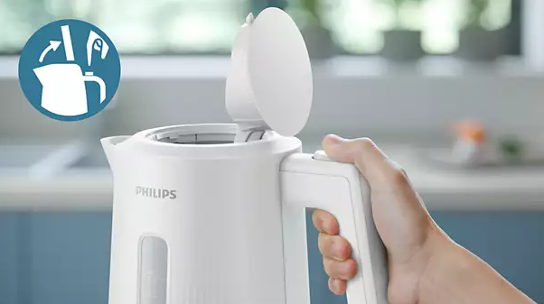Відкрити кришку чайника для доливання води легко та інтуїтивно зрозуміло завдяки кнопці, зручно розташованій на ручці. Незалежно від того, лівша ви чи правша, просто зніміть кришку та тримайте чайник під краном, щоб наповнити водою, і все це однією рукою.