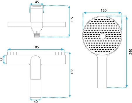 ЗМІШУВАЧ ДЛЯ ВАННИ НАСТІННИЙ МАТОВИЙ ЧОРНИЙ З ДУШОМ AVALON - REA