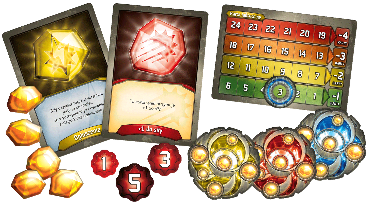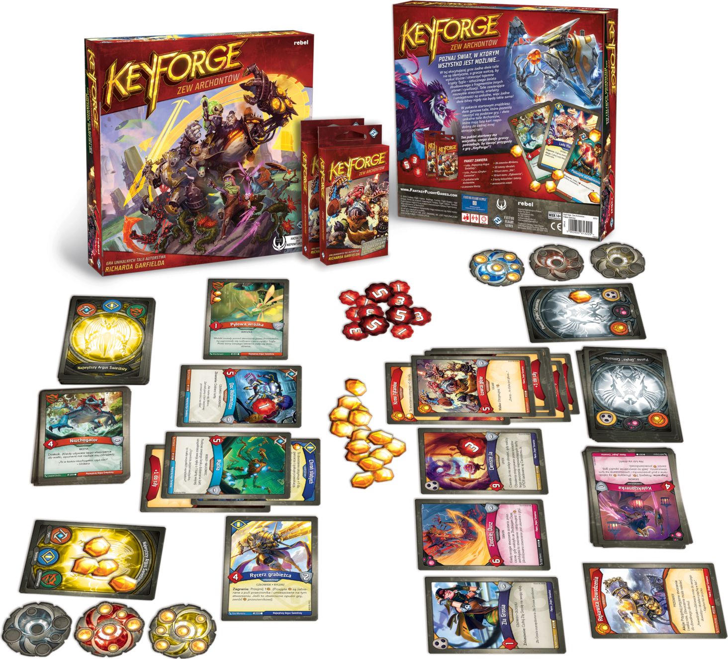 Вміст коробки: 2 унікальні колоди архонтів «Аргус Найвищий Сяючий» стартова колода «Міс «Онікс» Цензорій» стартова колода 6 жетонів ключів 2 карт лічильників ланцюжків 26 жетонів Æmber 22 жетонів шкоди 10 карт приголомшення 10 карт сили