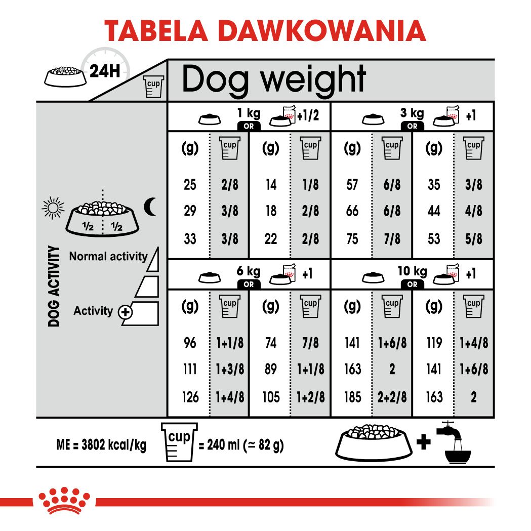 | Розмір собаки | Rasy małe (<10kg) |
