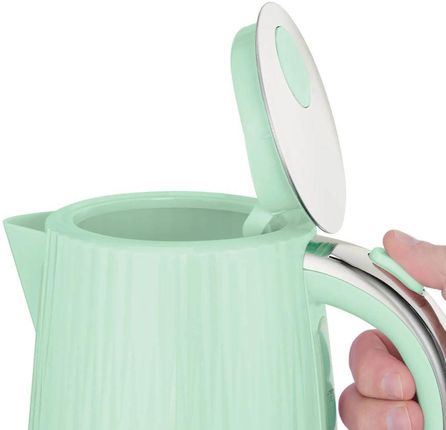 Чайник Eden Pistachio Kettle є темою для розмов на кожній кухні. Його фісташковий корпус із стильним рифленням привертає увагу всіх, і він не розчарує вас у продуктивності. Кришка з кнопкою, віконце з мірним стаканчиком для води та ідеальний носик гарантують, що ваш гарячий напій приготується швидко та легко.
