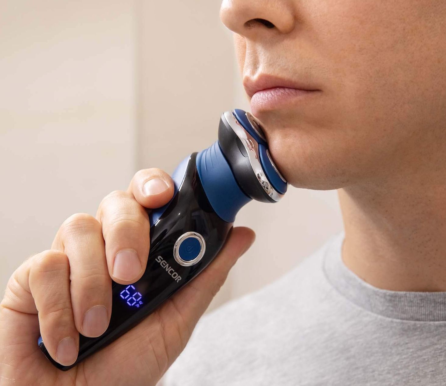 Дуже тихий, високошвидкісний двигун, призначений для сухого гоління. Леза з нержавіючої сталі запобігають ковзанню в руці рівень заряду акумулятора.