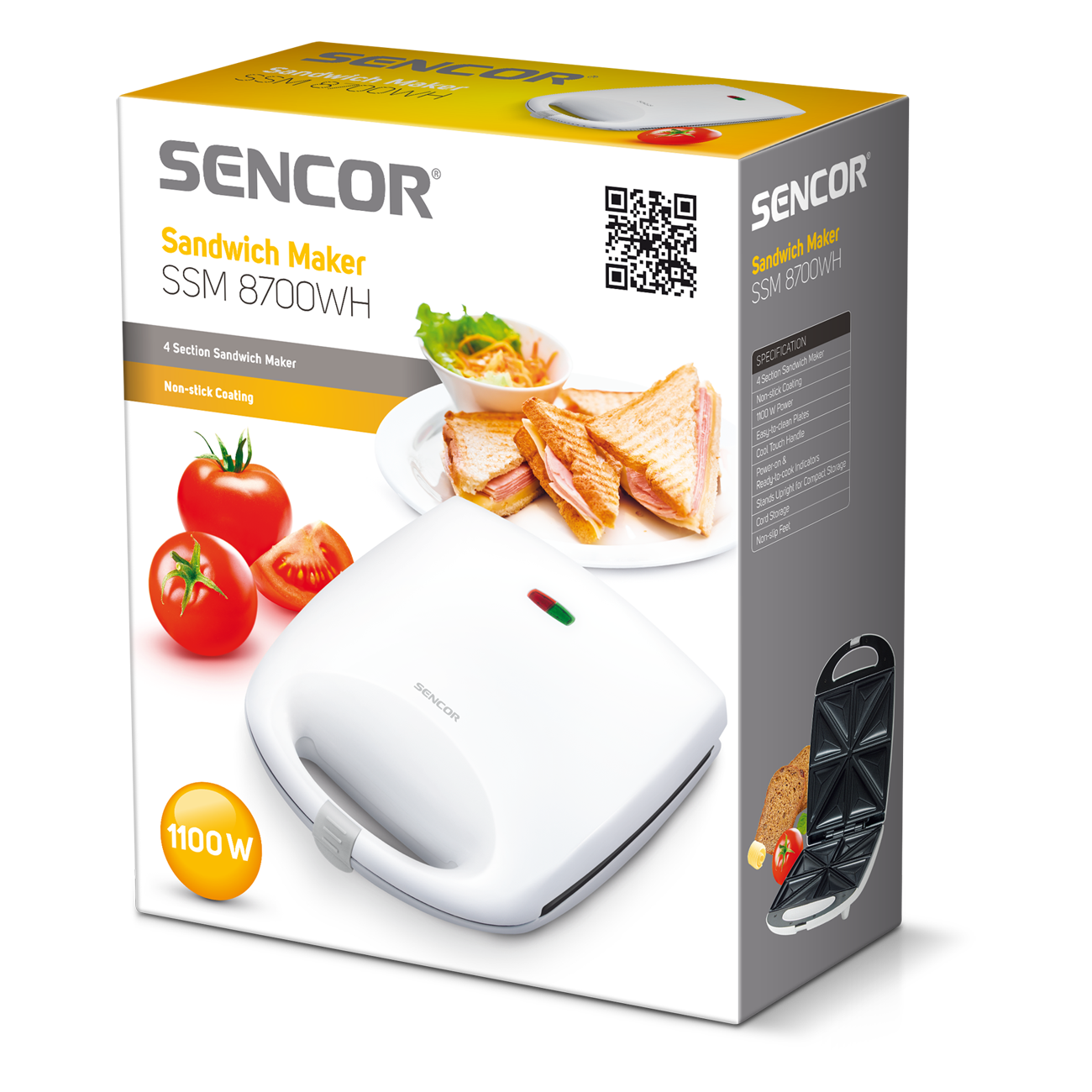 Сандвіч-форма: ТрикутникТермостат: Немає Waffle розширення: Ні Індикатор стану роботи: ТакПотужність: 1 100 ВтВисота: 10,6 смШирина: 26,8 смГлибина: 31,9 смКолір: БілийВага: 1,9 кгДовжина кабелю живлення: 75 смВага: 1,96 кгНапруга та частота: 220-240 В, 50/60 Гц