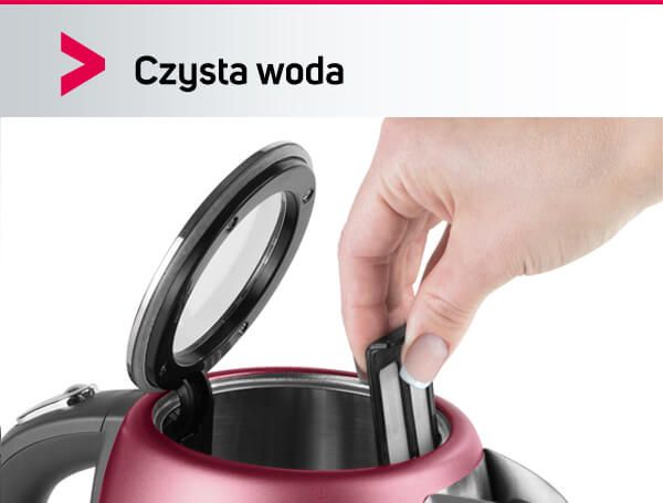 Чайник оснащений знімною сіточкою-фільтром, яка затримує навіть найдрібніші частинки та мінералізовані відкладення на виході з во