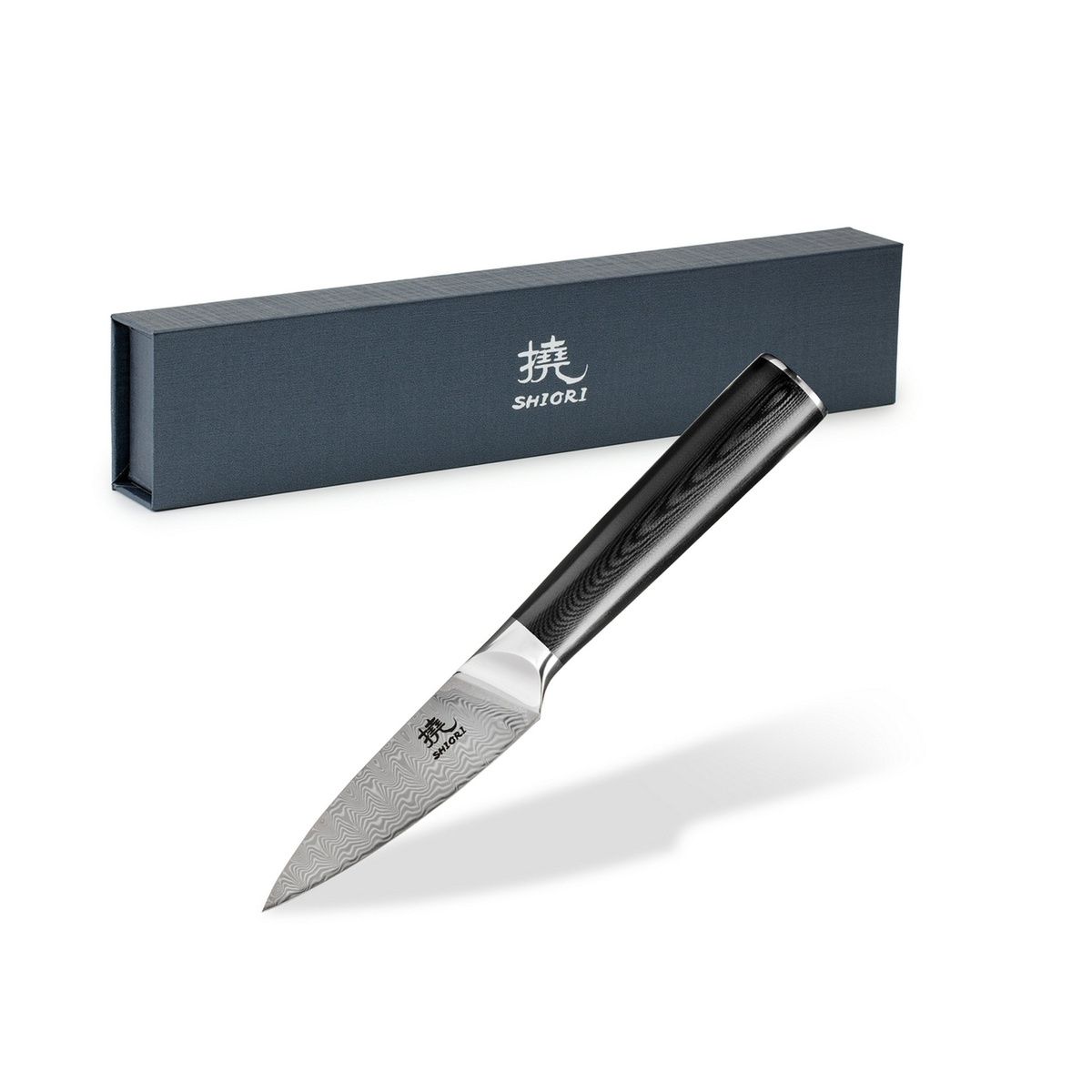 Ніж Shiori із серії 撓 Yasashi-sa Shōto, призначений для чищення овочів та фруктів. Ніж надзвичайно зручний у використанні та дуже добре лежить у руці. Він має невелике, вузьке, загострене лезо, яке дозволяє робити професійні декоративні леза з оригінальної дамаської сталі зі 110 шарами сталі. Багатошаровість сталі робить структуру різних шарів ножа дуже міцною та гнучкою. Рукоятка виготовлена з G10, додаючи класичної елегантності. Поєднання дуже хорошої сировини забезпечує унікальний продукт - еластичний, жорсткий, гострий. Ідеальний ніж на кожній кухні. Ідеальний продукт в подарунок *Твердість HRC - це критерій, який дозволяє визначити клас ножа, виражений в градусах HRC (шкала Роквелла). Це говорить нам про те, наскільки міцна сталь вико