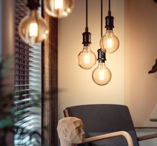 Сучасні світлодіодні технології в поєднанні з ретро-стилем завдяки прозорому корпусу та спіральній нитці.