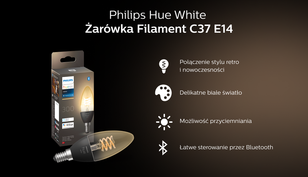 Розумне освітлення PHILIPS HUE White Filament 1 szt. C37 E14Розумне освітлення PHILIPS HUE White Filament 1 szt. C37 E14
