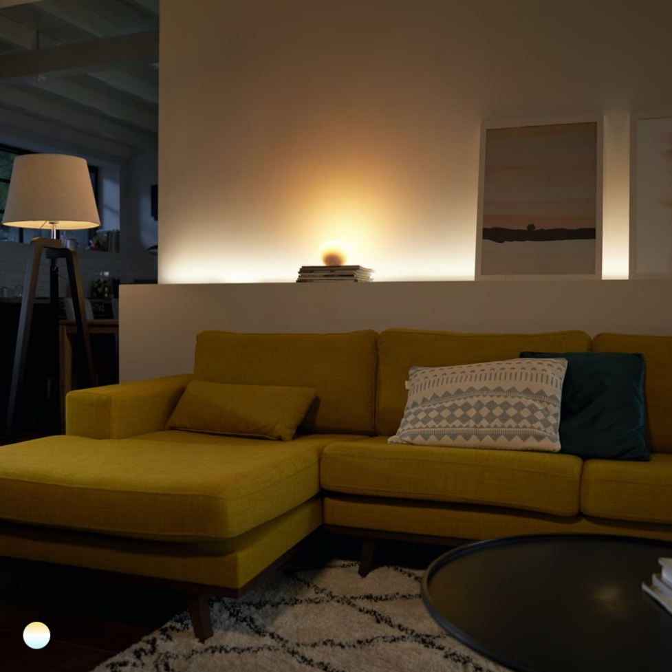 Лампа Philips Hue luster P45 E14 дозволяє інтегрувати найменші лампи та світильники з інтелектуальною системою освітлення Philips Hue. Вона не більша за м’яч для гольфу і підходить там, де інші, довші лампи E14 не можуть. Лампочка Lustre доступна у версіях White, White Ambiance або White and Colour Ambiance і принесе мільйони відтінків білого та кольорового світла в будь-яке місце у вашому домі.