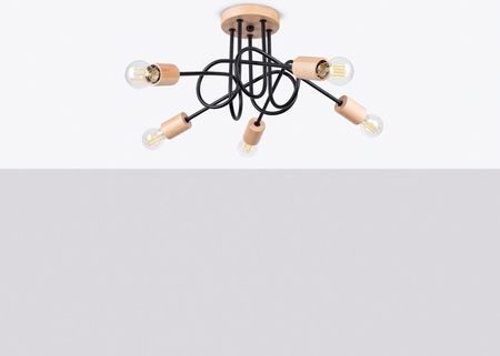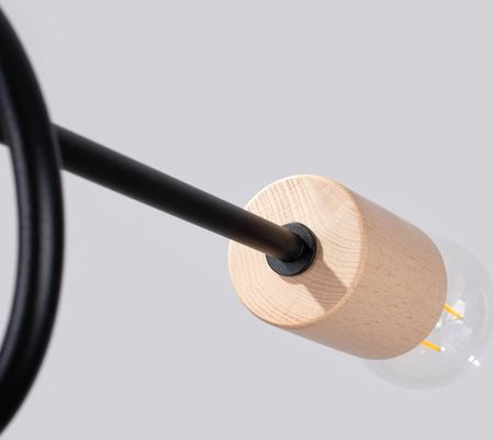 Люстра EMBER 5 чорна чорна/мінімалістичний світильник з натурального дерева