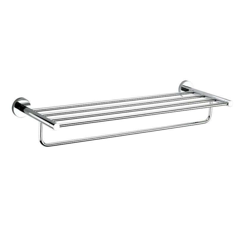 Полиця 60 для рушників з хромованою рейкою. Модель: 07.02160 Розміри: 645 x 215 x 180 мм - застосування: для зберігання та розвішування рушників, - матеріал: нержавіюча сталь, латунь, поверхня: хром, - невидиме кріплення, - монтажний набір входить до стіни (стандартні шпильки, нержавіючі гвинти)