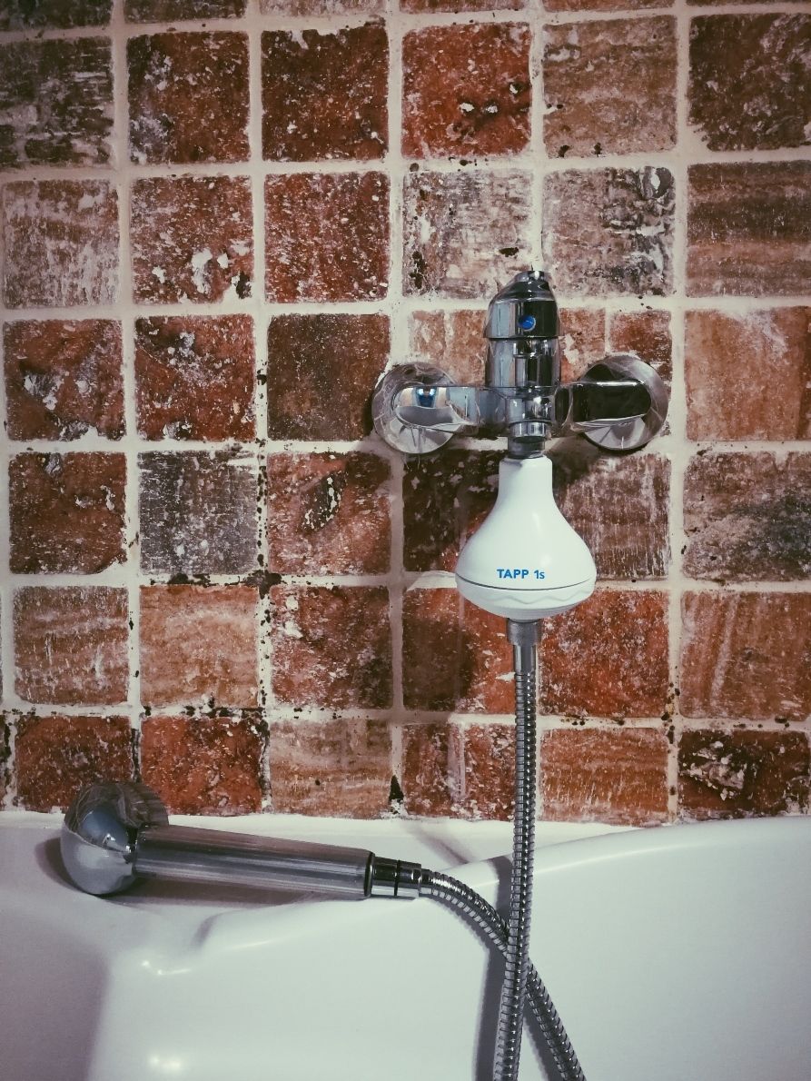 Фільтр для душу TAPP Water Tapp 1s очищує воду, коли вона проходить через фільтр.