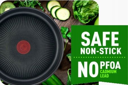 PFOA, без свинцю та кадмію! ***Посуд підлягає суворішому контролю, ніж вимагається нормативними документами щодо допустимості контакту з харчовими продуктами. Відсутність свинцю та кадмію в покритті означає відсутність навмисного додавання Pb і Cd до покриттів. Відсутність міграції при 0,005 мг/кг.