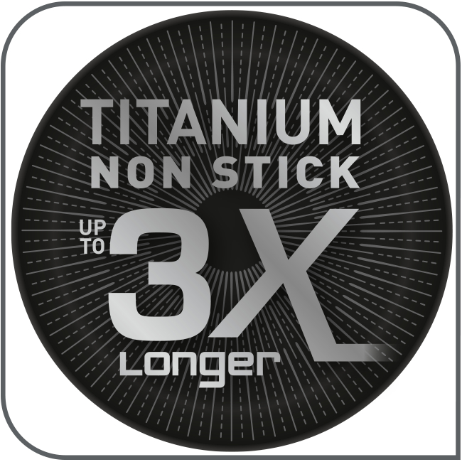 Довгі роки використання Відчуйте новий рівень якості завдяки надзвичайно міцному антипригарному покриттю, посиленому частинками титану. Це означає, що ви можете використовувати свою сковороду до трьох разів довше, ніж сковорідку зі стандартним покриттям.