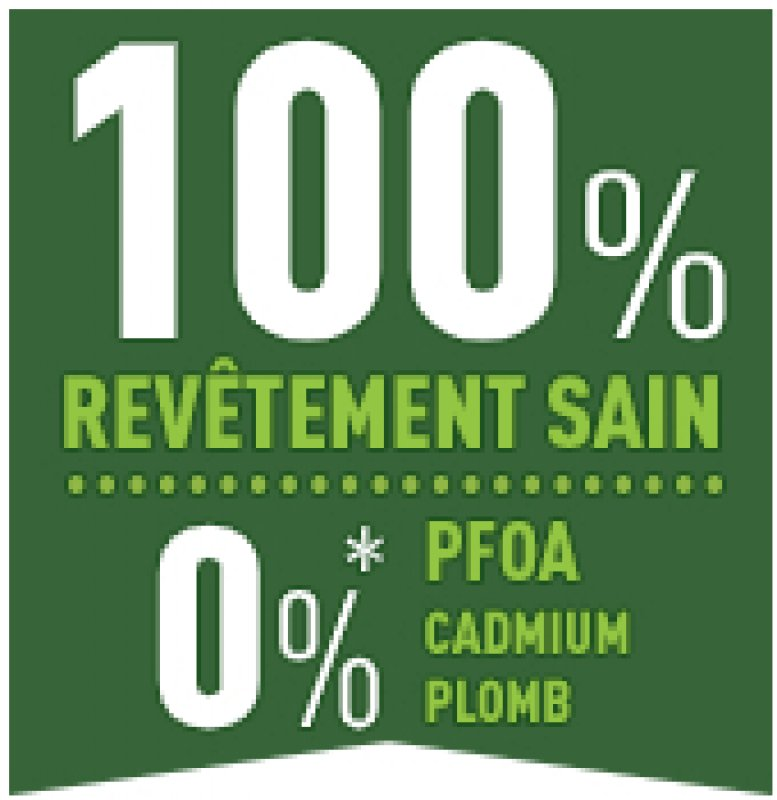 Здорове та безпечне приготування їжі. Без PFOA, свинцю та кадмію! *Посуд підлягає суворішому контролю, ніж вимагається нормативними документами щодо допустимості контакту з харчовими продуктами. Відсутність свинцю та кадмію в покритті означає відсутність навмисного додавання Pb і Cd до покриттів. Відсутність міграції при 0,005 мг/кг.