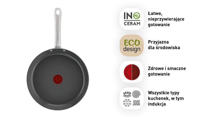 З каструлею Tefal Renew ви можете готувати здорові та чудово приготовані страви! Індикатор температури Thermo-Signal стає яскраво-червоним, коли сковорода досягає ідеальної температури для смаження.