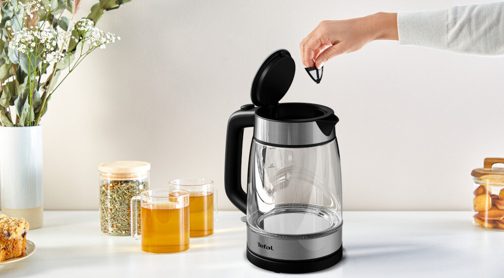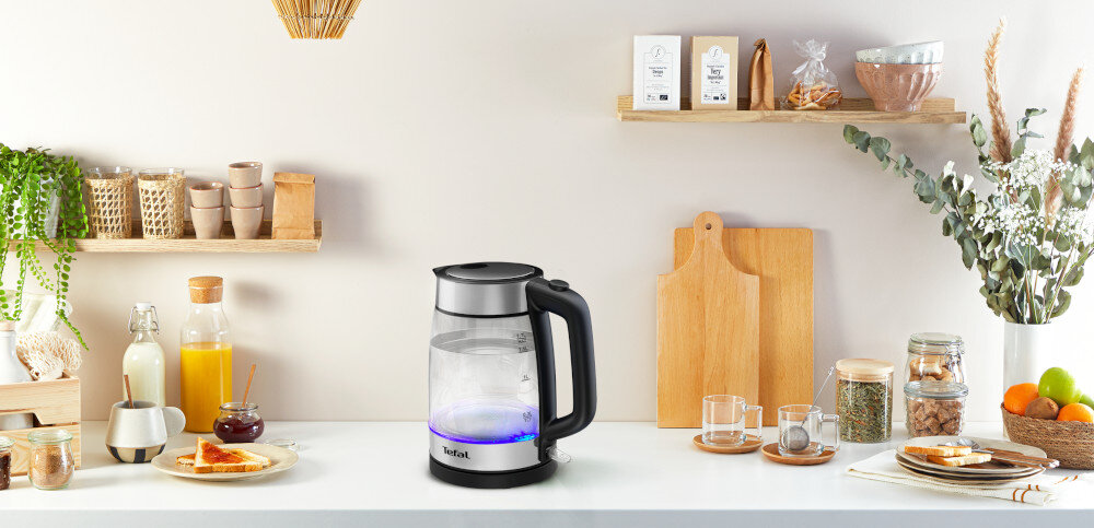 Насолоджуйтеся свіжоприготованою водою в елегантному скляному чайнику! Скляний чайник Tefal ємністю 1,7 л. Насолоджуйтесь смаком найякіснішого чаю, завдяки воді, приготовленій в елегантному чайнику. Прилад виготовлений зі скла з благородним зовнішнім виглядом.