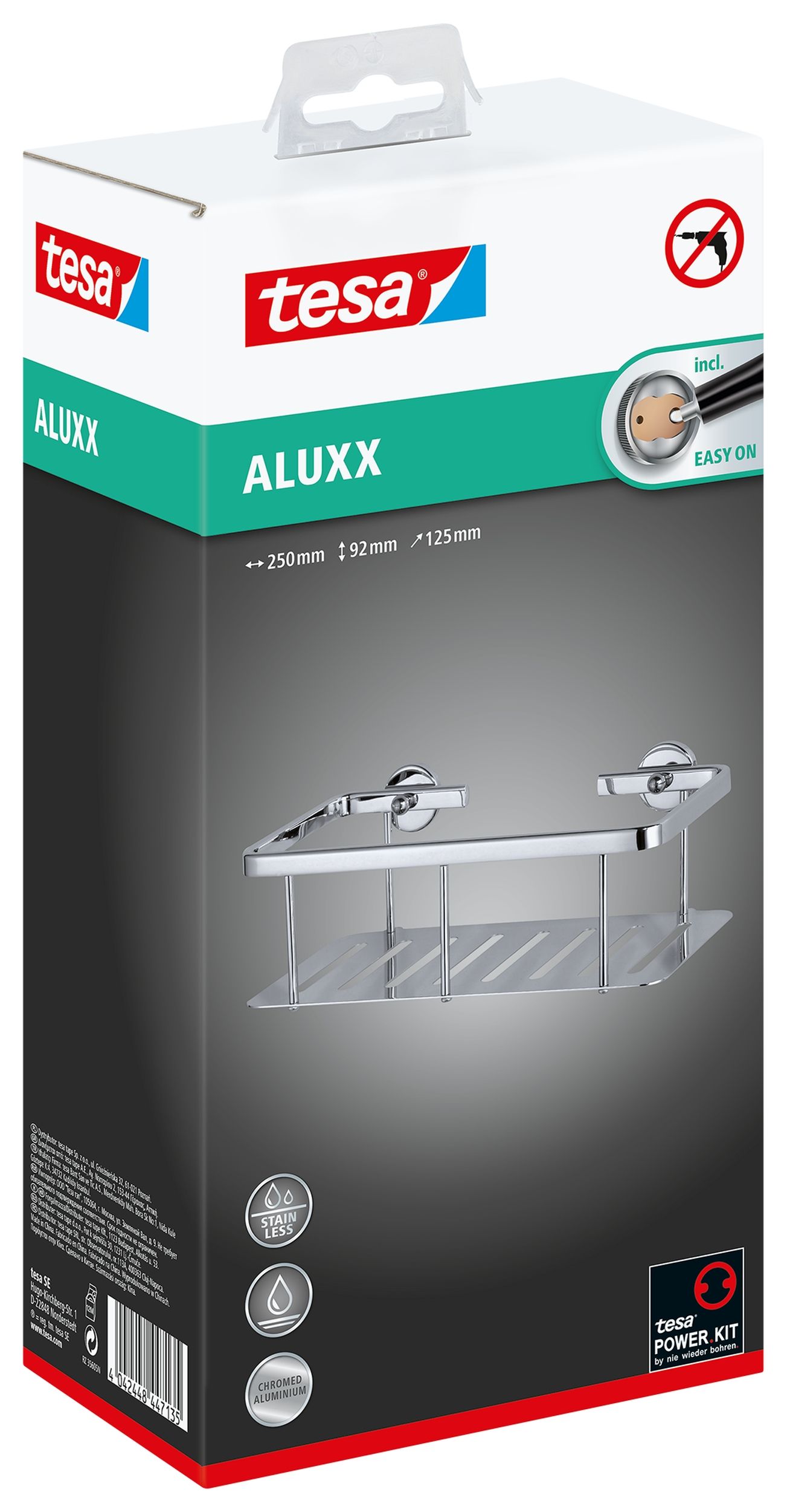 Мінімалістичний кошик для ванної кімнати з вбудованим дном. Завдяки перфорації не затримує воду, при цьому забезпечується стабільне розташування косметики.Проста збірка - БЕЗ СВЕРДЛЕННЯ завдяки технології tesa® Power.Kit .Постійне кріплення, яке можна знімати.Можливість повторного монтажу за допомогою нового адаптера.Розміри: 92 мм x 250 мм. Покриття: круглаСерія: Aluxx.