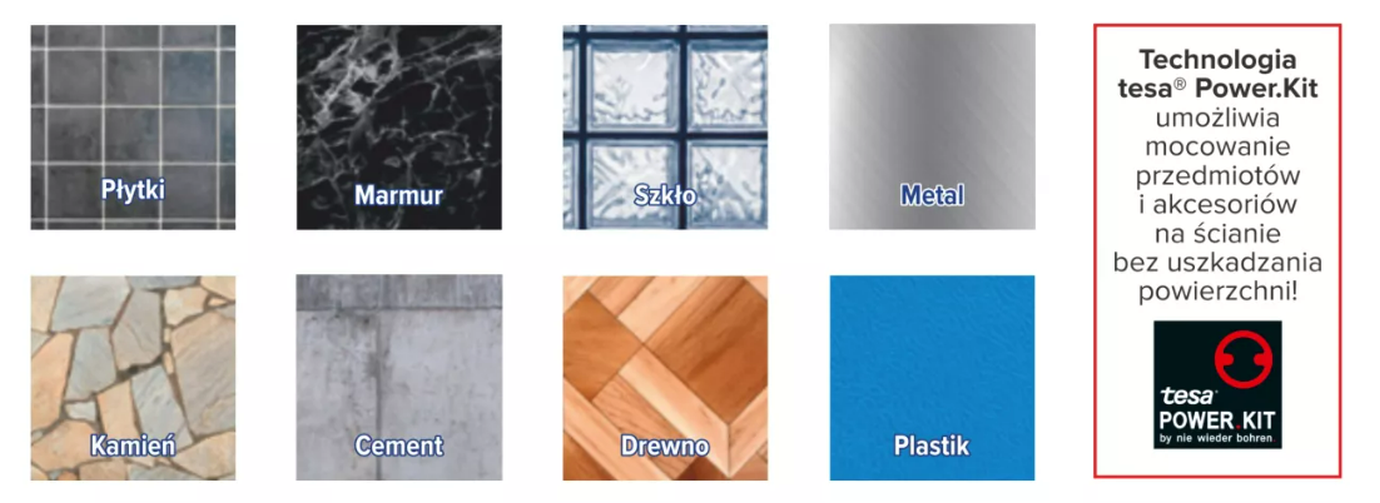 Простий монтаж аксесуарів для ванної кімнати tesa® можливий завдяки запатентованій технології Power.Kit.