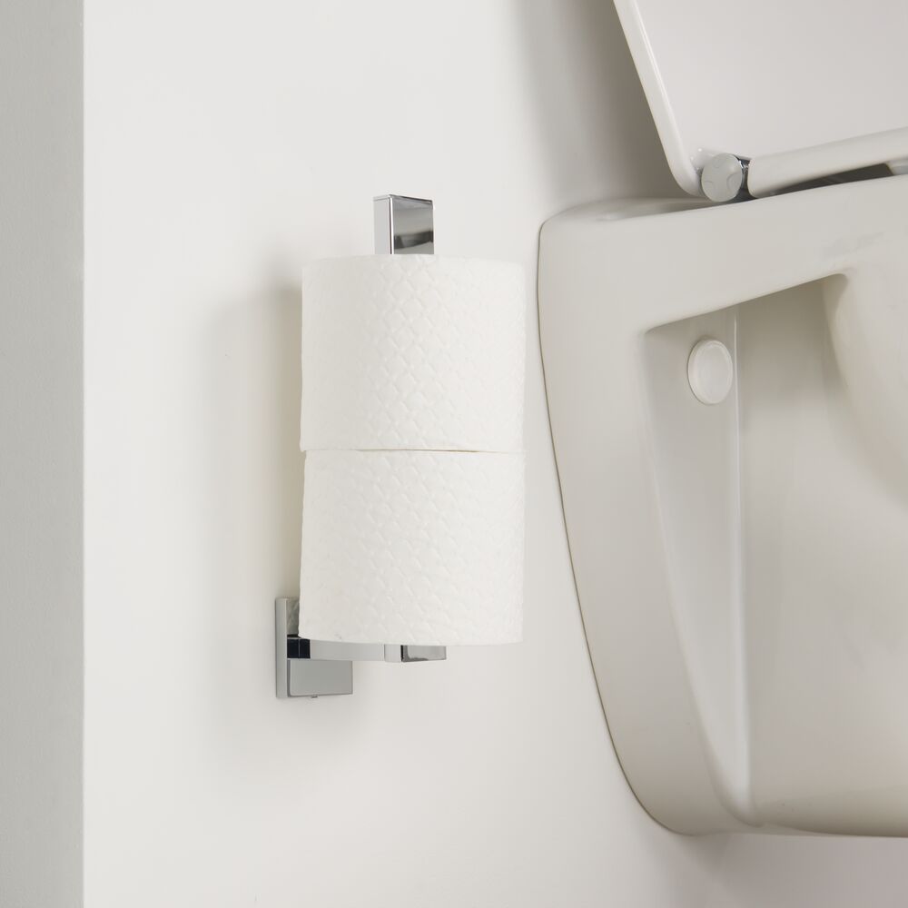 Тримач Tiger Items має хромоване покриття та вміщує два запасні рулони паперу. Завдяки елегантній ручці ви завжди можете мати додаткові рулони під рукою. Елементи прихованого кріплення забезпечують елегантний вигляд тримача при кріпленні до стіни.